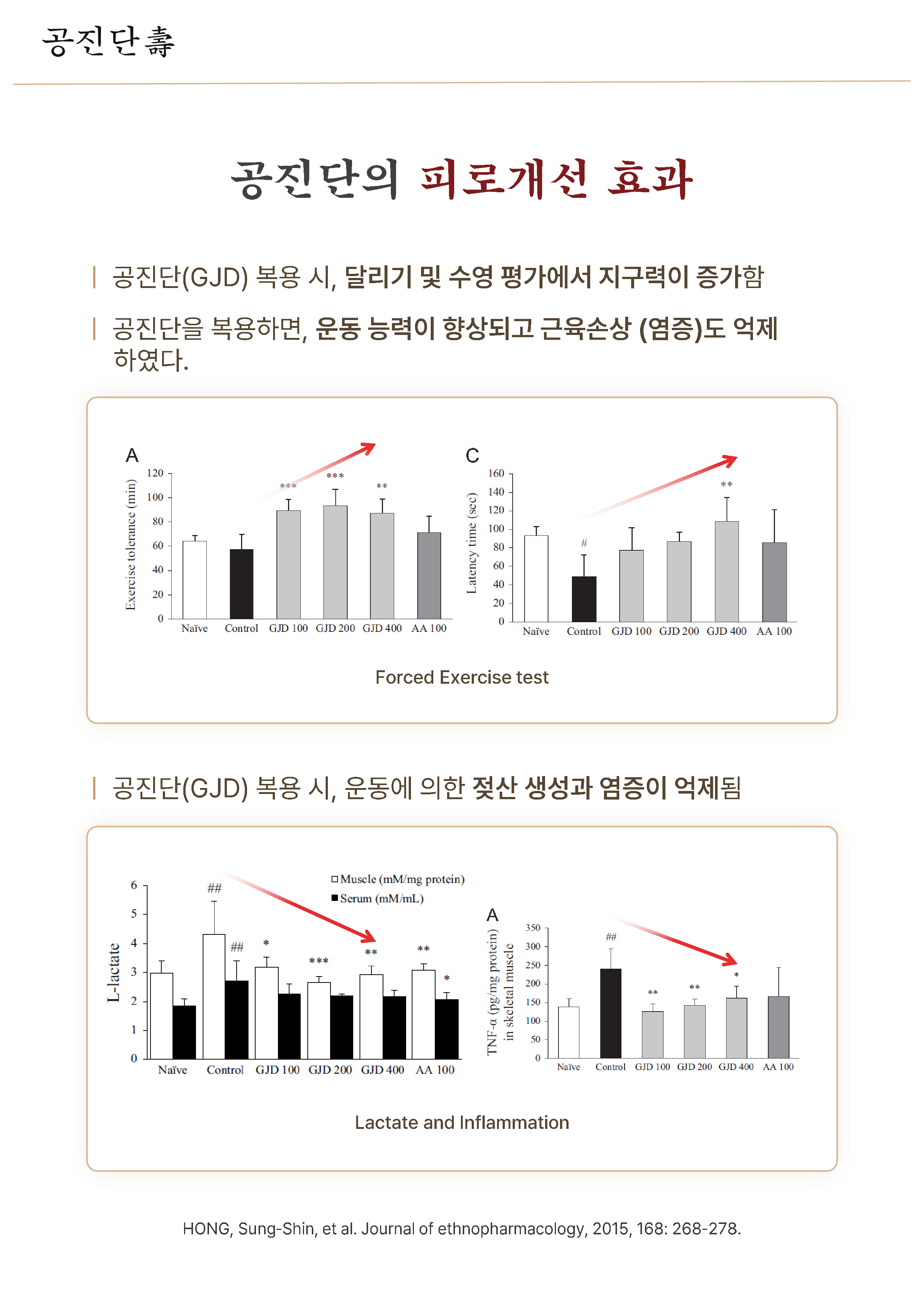 운동에 의한 젖산 생성과 염증이 억제되었습니다.