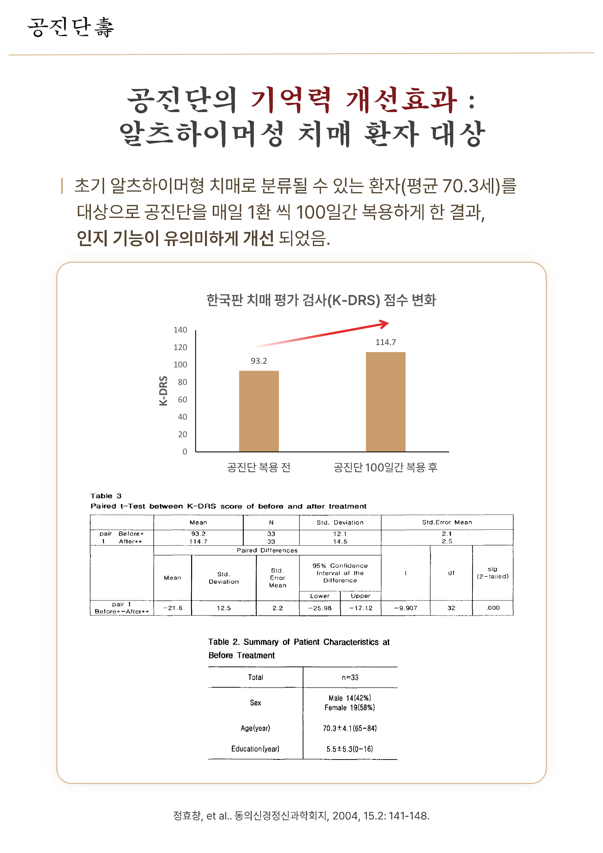 100일간 복용한 후 인지기능이 유의미하게 개선되었음을 확인했습니다.