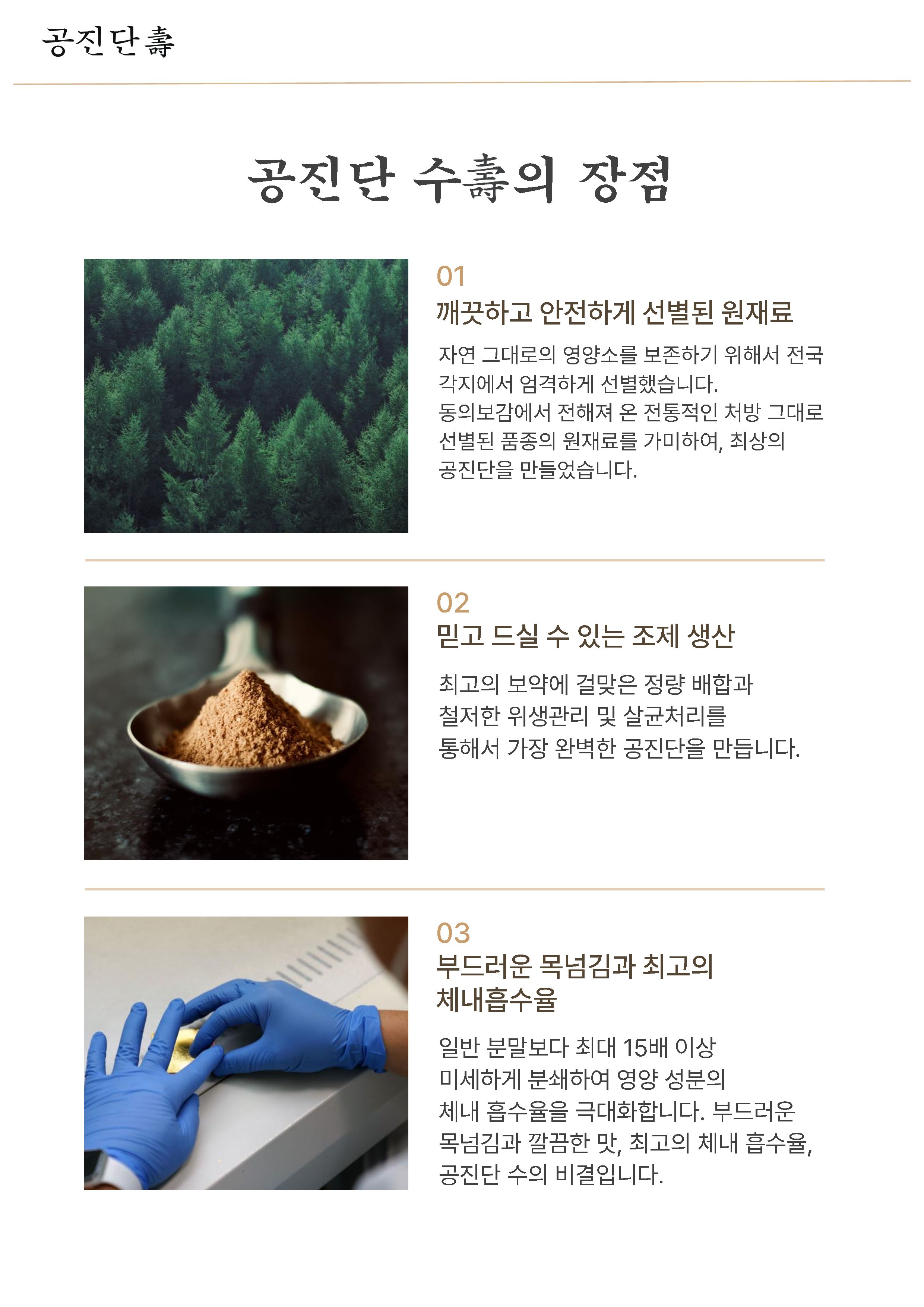공진단은 사향, 녹용, 산수유, 당귀로 이루어져 있습니다.